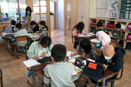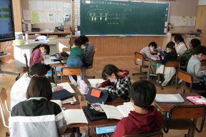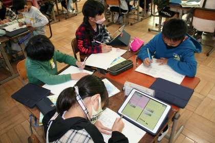 3年1組が算数で,2けた×1けたの筆算を勉強していました。本時のめあては,「数えぼうを使って,計算の仕方をせつ明しよう」です。タブレットも使って,考えていました。