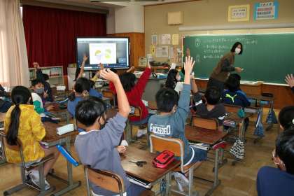 今回のテーマは,「校内で起こるけがの予防について考えよう」です。保健委員会がつくったけがについてのパネルを見て,各クラスで話し合いました。