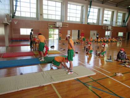 今日の1〜3時間目に,5・6年生が体力テストをしました。