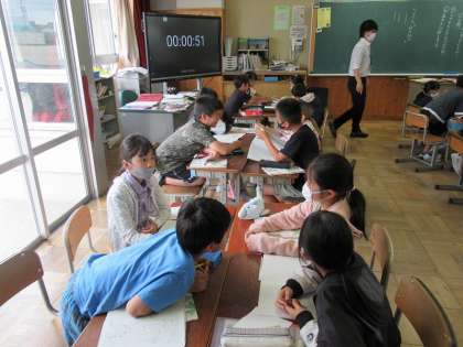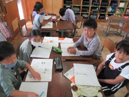 3年2組が国語で,「もっと知りたい,友だちのこと」の学習をしていました。グループで友だちの話を聞き,もっと知りたいことを質問していました。