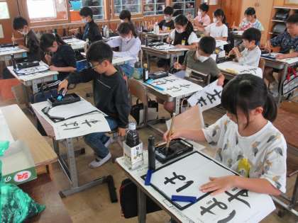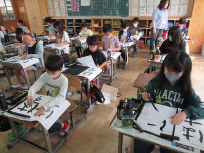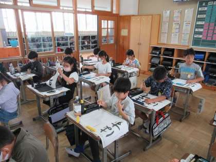 4年1組が書写の毛筆で,「はす」を練習していました。ひらがなの筆使いの練習です。