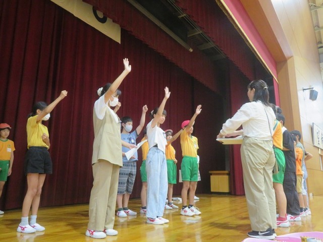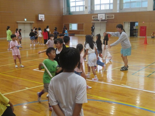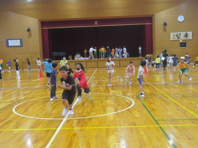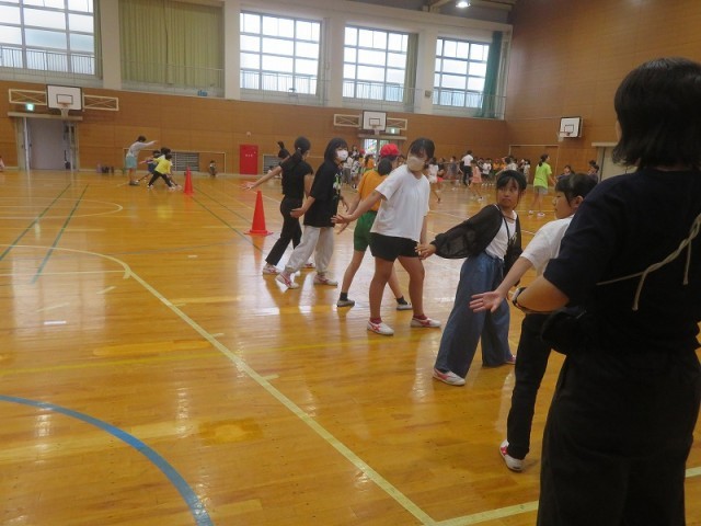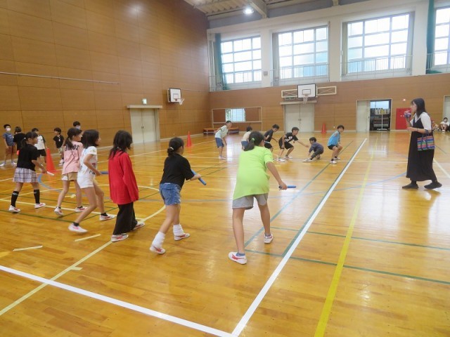 本日は、雨が降ったので、3色リレーの練習を体育館で行いました。