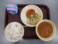 今日の献立はむぎごはん ぎゅうにゅうさつまいもいりこめこカレーライスてりやきとう...