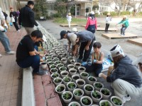 今日は、PTA花ボランティアの活動で、卒業式・入学式用の花の苗を鉢に移植しました...