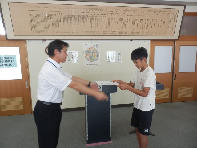後期学級委員の任命式を行いました。
