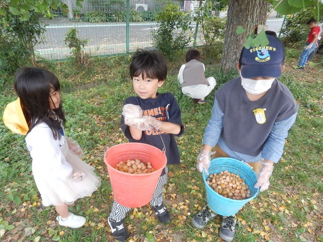 また、校庭の銀杏の実を、バケツいっぱいに集めることができました。