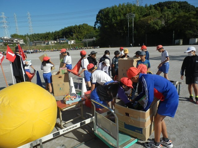 リハーサルの後半は、1年から4年の大玉送り、5年・6年のソーラン節です。