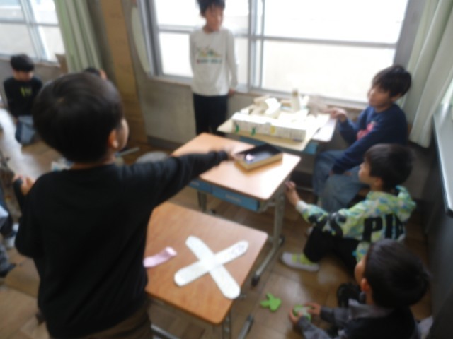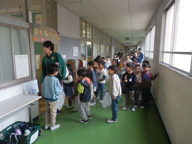 2年生が1年生を招待して、「おもちゃランド」を開きました。