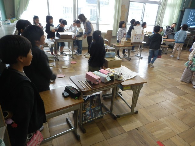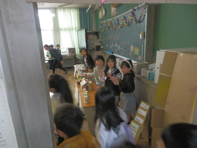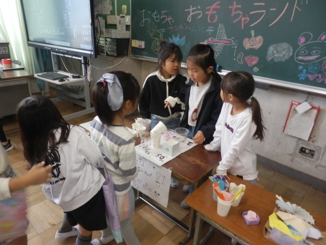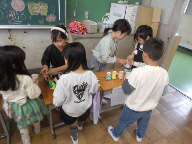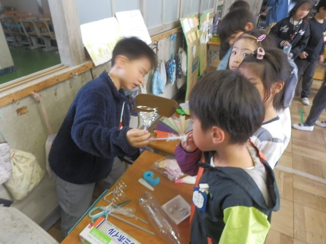 1年生は、たくさんのコーナーに訪れ、体験した後は手作りの景品をもらってとてもうれしそうでした。