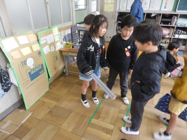 2年生は1年生に楽しんでもらおうと、身近な物で遊びやゲームを考え、準備をしてきました。