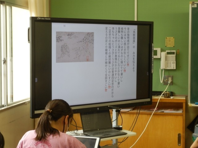子どもたちは、初めて鳥獣戯画を見て、どこを、どうほめるか考えてみました。