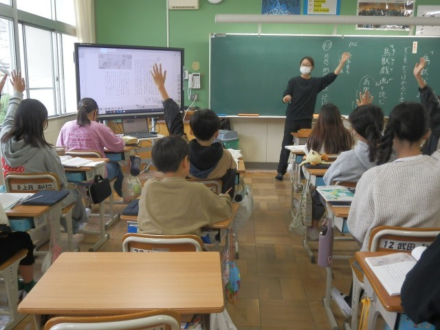 6年生の国語で、単元「発見、日本文化のみりょく」に、「鳥獣戯画を読もう」という教材があります。