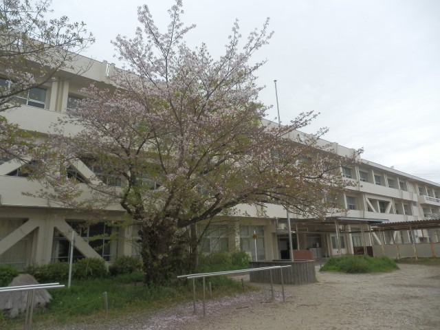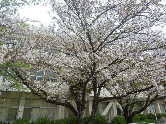 準備万端! 桜の花もがんばって、新入生を迎えてくれています。