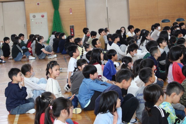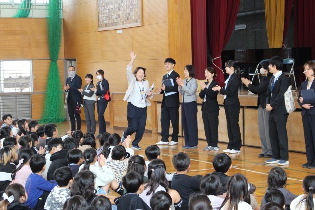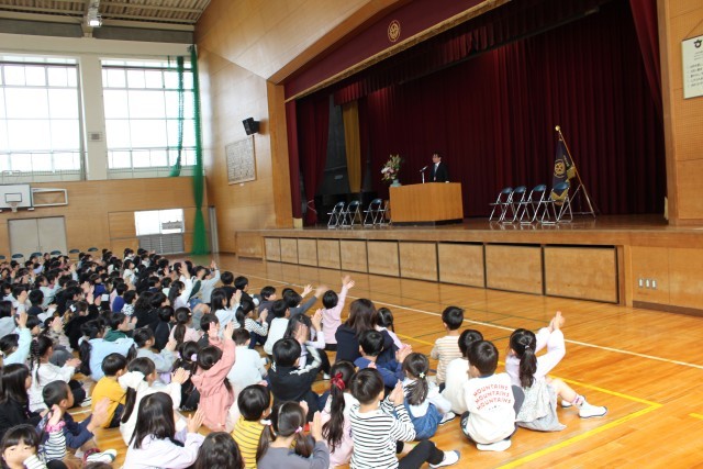 対面を終えて、岡田小学校のみんながそろって、始業式です。