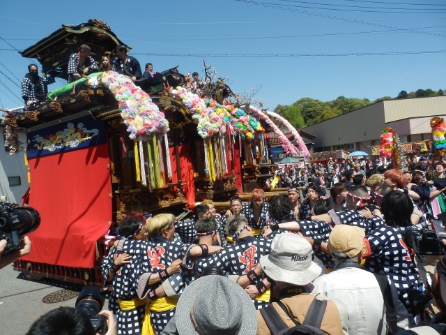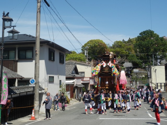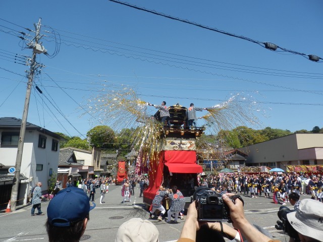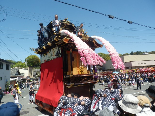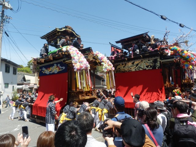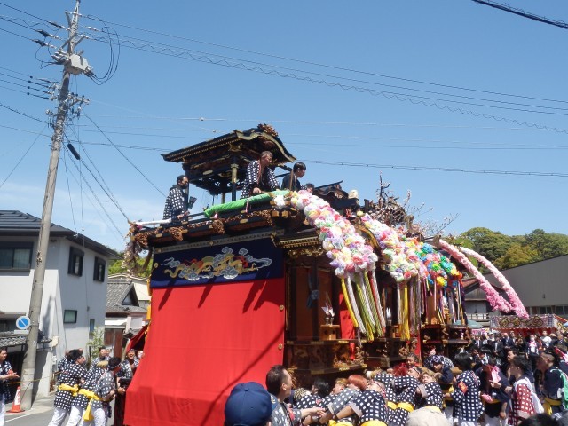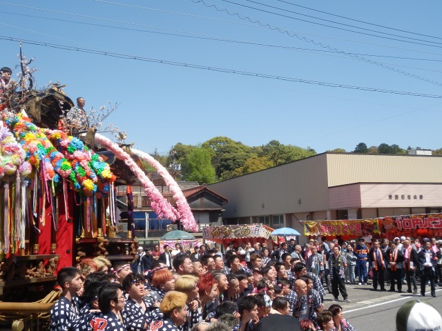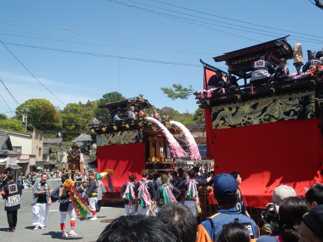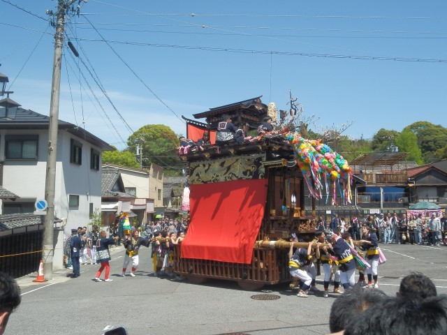 4月12日(日)に、岡田春まつり(本祭り)で、山車行例の迫力を間近で見ました。