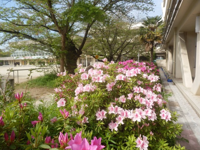 今、校庭では、ツツジの花がきれいに咲いていて、子どもたちを出迎えてくれます。