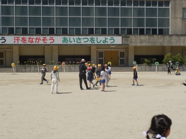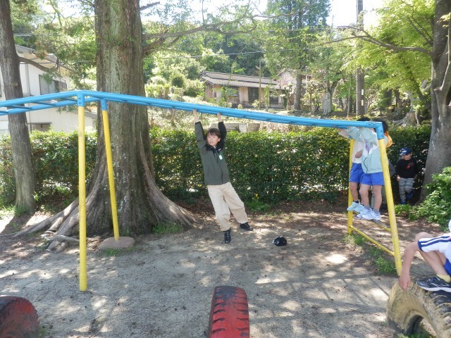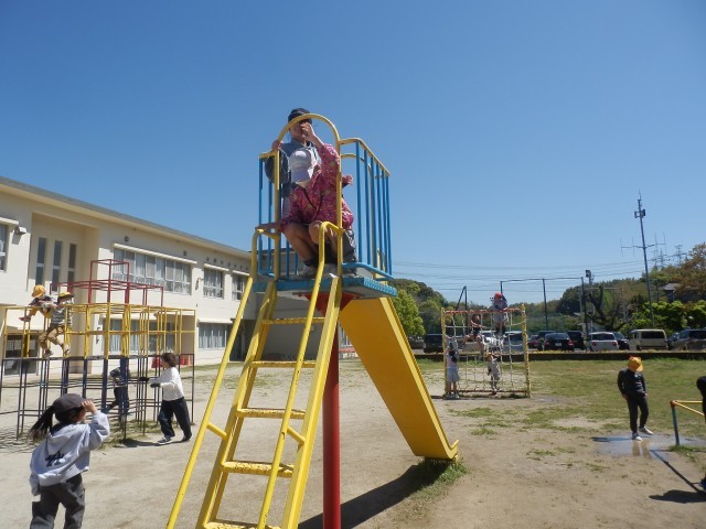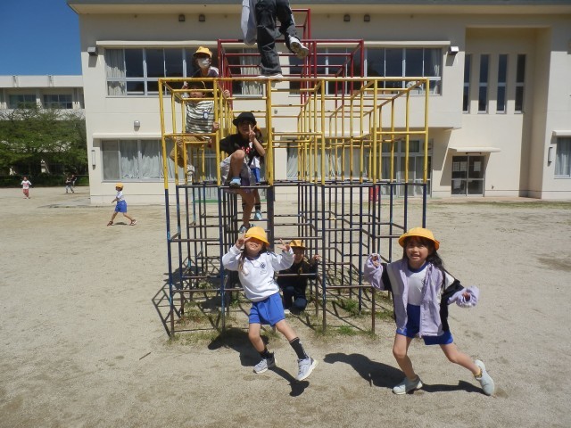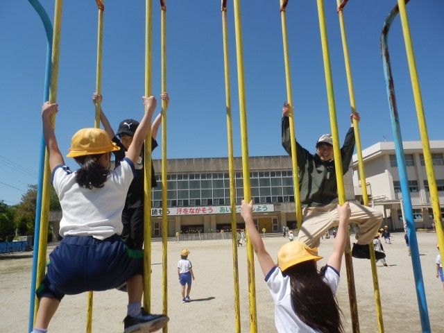 今日は、低学年が遊ぶ遊具のある運動場の様子を見ました。
