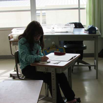 1/23 国語科(日本語適応教室) 公開日 2017/01/24 更新日 2017/01/24 6年生 日本語適応教室では,国語の授業を一人一人に新美先生がついて指導していました。写真は,その授業風景です。