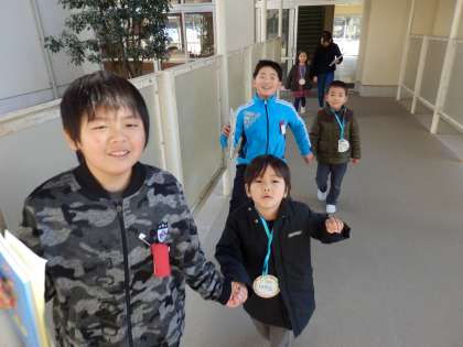1/25 半日入学(5年生) 公開日 2017/01/25 更新日 2017/01/25 5年生 本日,6時間目に5年生が半日入学で,来年度の新1年生のお世話をしました。学校の中を見て回ったり,読み聞かせなどをしたりして,優しく接することができました。 来年度の最高学年として,立派に引き連れることができました。