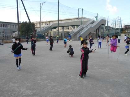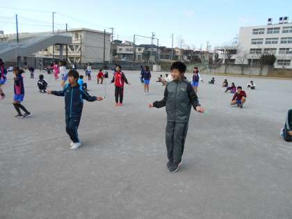 2月6日(月)全校でなわとび大会を行う予定でしたが,インフルエンザ拡散を防止するために各学年ごとに行うことになりました。写真は,6年生がなわとび大会を行っている様子です。1分間で,さまざまな種目でどれだけ跳べるかを競っています。