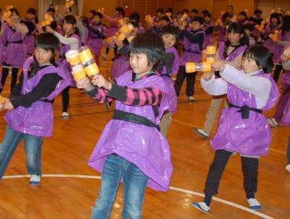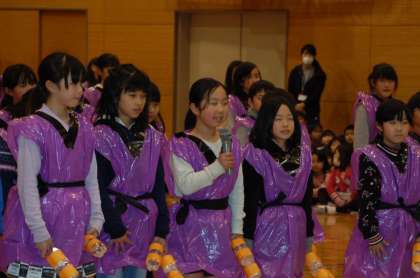 4年生は、1/2成人式で踊った「エイサー」を元気よく、ペットボトルでリズムを刻み、6年生を囲んで発表することができました。元気よさが伝わり、6年生もとても嬉しそうでした。