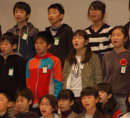 6年生は、在校生にお返しで、卒業式に歌う「桜の雨」を歌いました。まだ練習を始めたところでしたが、とてもきれいな歌声でした。在校生の姿を見ることで、6年生は安心できたと思います。在校生は6年生が作った伝統あるバトンを受け取り、頑張ってくれることだと思います。