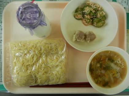 ちゅうかめん ぎゅうにゅう ごもくあんかけ しゅうまい(2こ) バンバンジーサラダ たくじょうバンバンジードレッシング