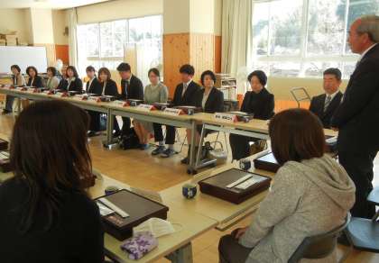 4月3日(月)加藤裕美校長先生をはじめ、13名の方に赴任していただきました。安永和美事務長、渥美かおる主任養護教諭、田中一成校務主任、乾 マミ先生、宮本勇也先生、青木敬奈先生、近藤麻友先生、阿知波由奈先生、平田 諭先生、藤山和世生活指導員、諸岡孝子事務員、黒川恵美子用務員のみなさんです。集会室に入っていただき、歓迎会を行いました。また、この13名を加えて、平成29年度も子どもたちや岡田小学校のためにがんばってまいります。ご支援・ご指導よろしくお願いします。