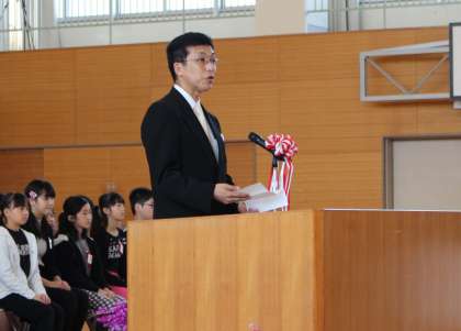 教育委員会からは、学校教育課指導主事 阿部剛士様、知多市議会議員 泉 清秀様、PTA会長 竹内 亮様より温かいお言葉をいただきました。ありがとうございました。その後、36名参加していただいた来賓のご紹介、祝電を教頭先生よりさせていただきました。ご参列、祝電ありがとうございました。