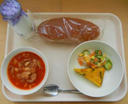 くろロール ぎゅうにゅう ポークビーンズ かぼちゃのアンサンブルエッグ コールスローサラダ