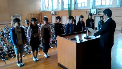 朝礼で,学級委員と委員長が任命されました。学級や学校のために活躍して欲しいと思います。