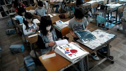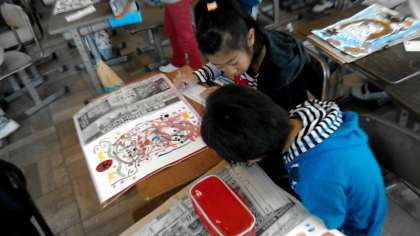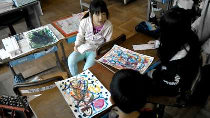 3年2組で図工の授業を行いました。テーマは『色,形,いいかんじ!』です。