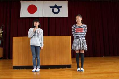 5月になりました。連休の合間ですが,岡田小学校の子どもたちはさわやかに登校しています。朝礼で,4年生と6年生の代表児童がスピーチをしました。