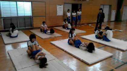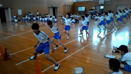 今日も,体力テストです。体育館での種目に挑戦しています。