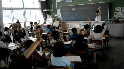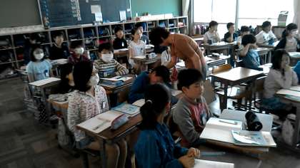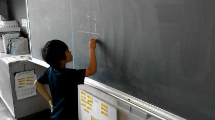 5年1組の算数の授業の様子です。小数のかけ算を学んでいます。