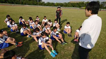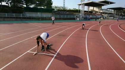 リレーの選手が,知多運動公園陸上競技場で現地練習を行いました。