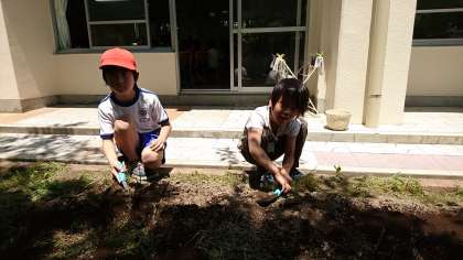 ひまわり学級で,野菜の苗を植える準備をしています。