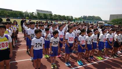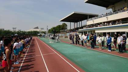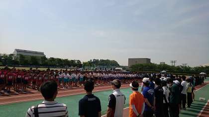 開会式の様子です。この後9時50分より,リレーの予選が行われます。