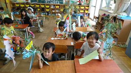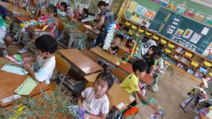 1年3組の生活科の授業です。七夕飾りをつくっています。