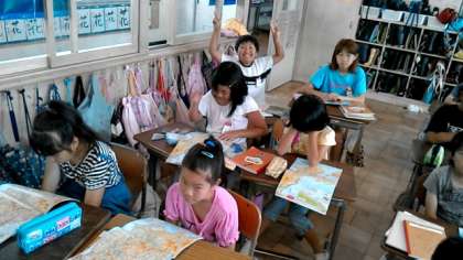 4年3組の社会の授業です。地図帳を使って,地図の見方を勉強しています。