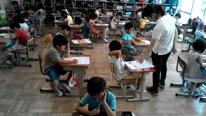 2年2組の算数のテストの様子です。1学期も間もなく終わりです。しっかりと復習したいですね…。