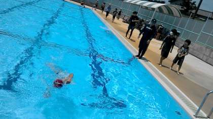 5年生は泳力測定です。25m泳ぐことができたでしょうか…。
