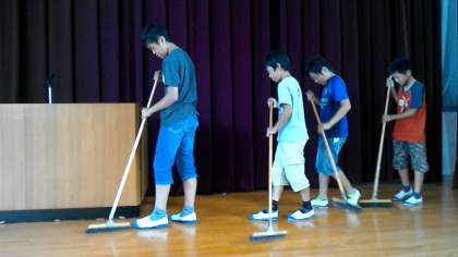 クリーン委員会の児童が,よい掃除の仕方の見本を見せてくれました。
