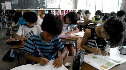 3年1組の書写の授業です。1学期最後の書写は,硬筆の授業でした。