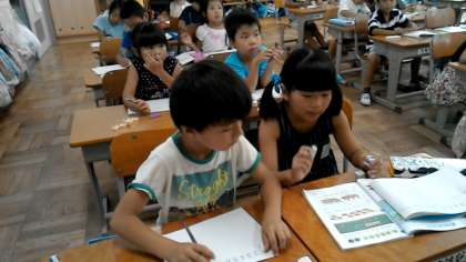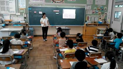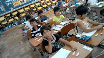 1年2組の算数の授業です。数字ブロックを使いながら,引き算の文章問題を考えています。