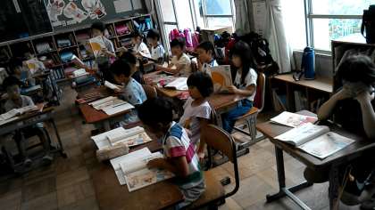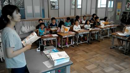 2年2組の国語です。「スイミー」の読み取りをしています。