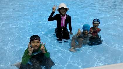 ひまわり学級では,着衣泳を行いました。服を着たままだと泳ぎにくいです…。