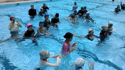 6年生は、1学期最後の水泳でした。着衣泳を行いました。