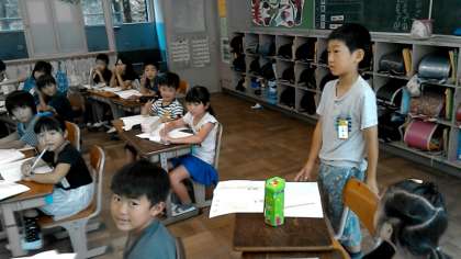 2年1組の国語の授業です。作文の書き方について学習しています。