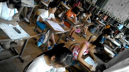 4年2組では,算数のテストを行っていました。図形についてのテストで,難しそうです…。